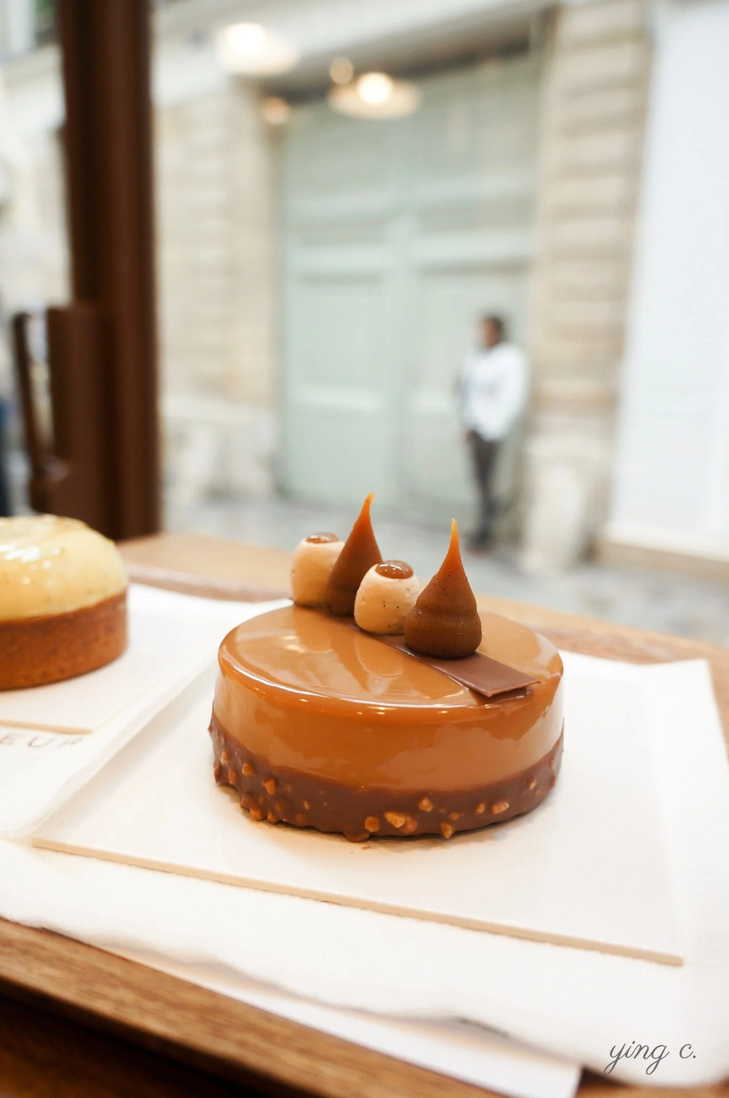 Johan Martin 主廚創作的「100% Caramel」(100% 焦糖)法式蛋糕,外觀和歌劇院蛋糕有顯著差距。