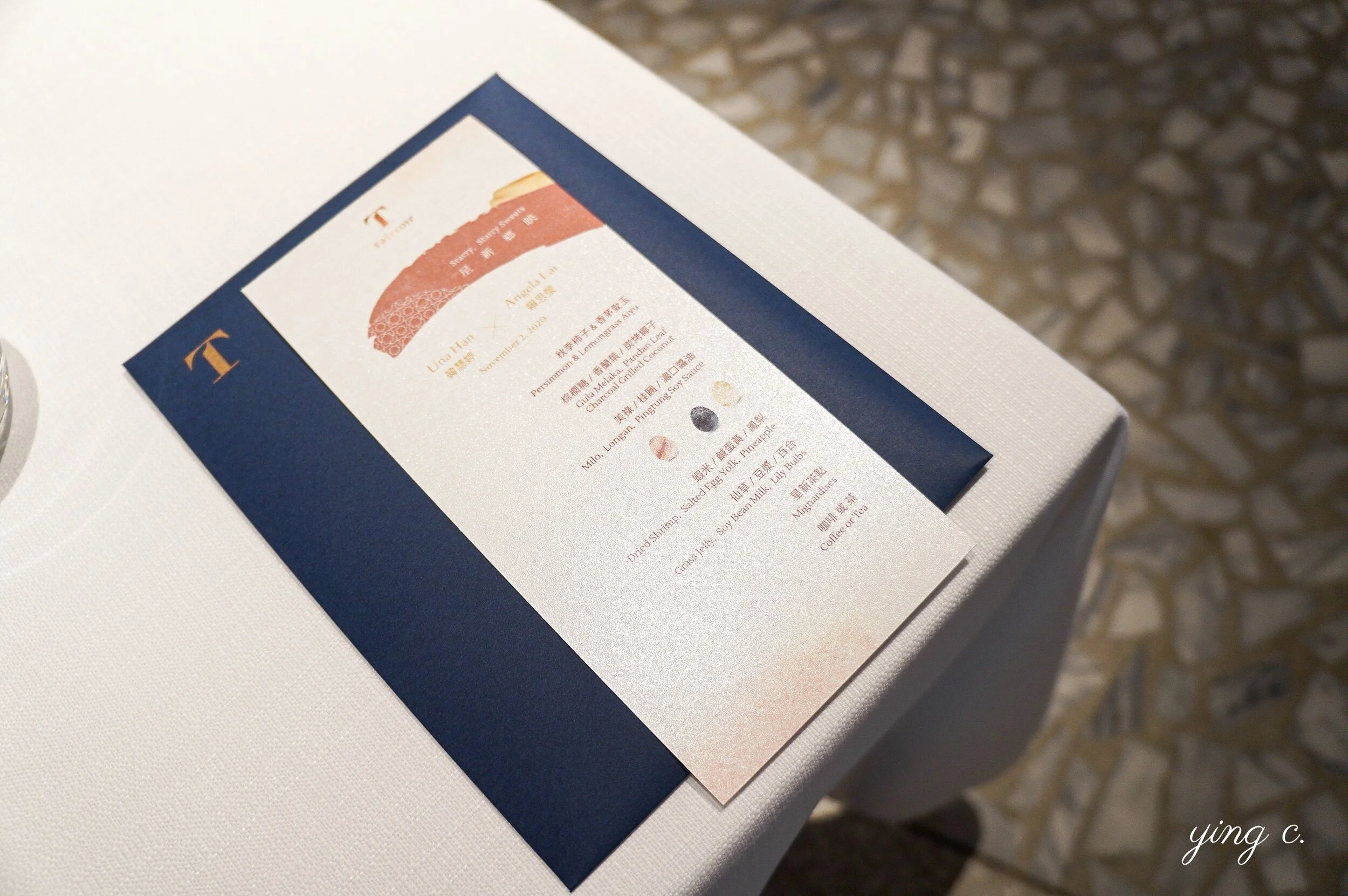 賓客陸續來臨,我也見到了幾位久違的朋友,途中還和另外一位曾在巴黎巧克力大展有過一面之緣的甜點師 Jeannie 相認…這種陌生中揉著熟悉、新奇裡又有安心的感覺就這樣一直伴著我持續到餐會最後。回到用餐區域,桌上早已準備好菜單和詳細的餐點說明: